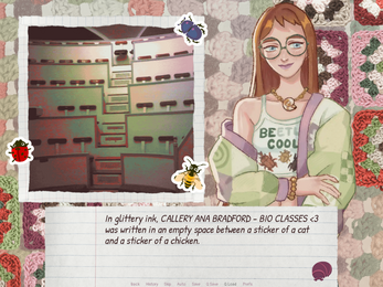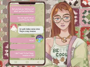 LOVED THIS... VERY MUCH!!! what a really nice tapestry... i think the sort of maximalist design fits the game's atmosphere super well, as we sink into callie's world. and it was so finely tuned holy cow! i loved all the little details like being able to scroll in the phone, the sort of hover parallax effect with the bg, the loads of perfect and delicious expressions, callie tightening that yarn around her finger during the text convo w aila early on, the cursor changes... dude like i could go on forever. the cursor change was particularly ero in how it in a really small but effective way involved the player. i was also so gagged at the ending, so well timed... but all in a super compelling snapshot of a very cute girl stumbling very hard as she connects some dots. LOVE! also the playlist is genius (kai please put this on bandcamp...)